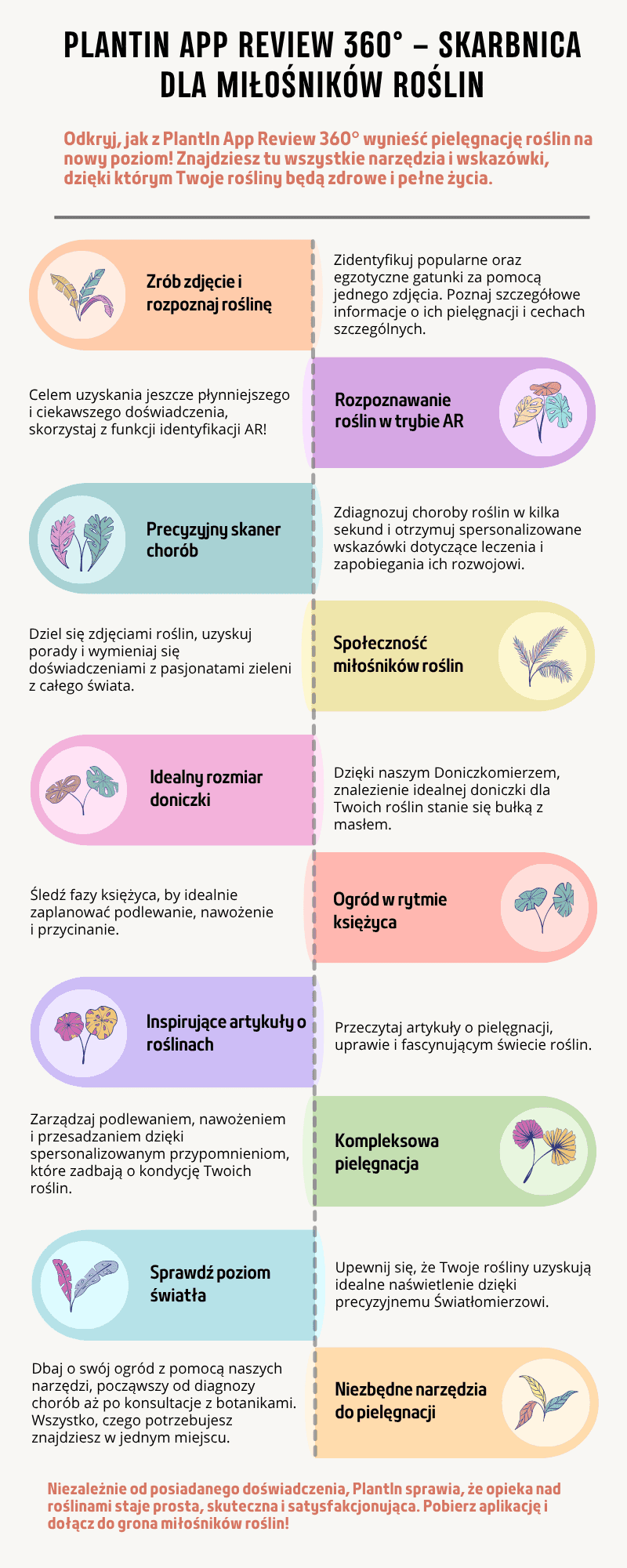 PlantIn to niezastąpione narzędzie dla każdego użytkownika, który pragnie utrzymać swoje rośliny w doskonałej kondycji. Oferuje ono zaawansowaną identyfikację, rozbudowaną bazę danych, spersonalizowane wskazówki pielęgnacyjne i funkcje społecznościowe. Nasza innowacyjna technologia zapewnia szybką i precyzyjną identyfikację roślin i grzybów, dzięki czemu wyróżniamy się na tle konkurencji w świecie aplikacji zorientowanych na pielęgnację roślin. Biorąc pod uwagę pozytywne opinie o aplikacji PlantIn i szeroki zakres funkcji, zdecydowanie warto ją wypróbować!