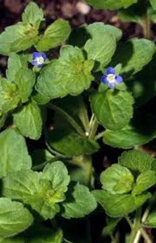 This plant is a summer annual that becomes ¾–2' tall, branching occasionally. The stems are covered with fine white hairs. The alternate leaves are up to 2" long and 1" across. They are ovate or ovate-oblong, crenate along the margins, and sparsely covered with fine hairs that are difficult to see. These leaves have long petioles (up to 1" long) and are rounded or slightly cordate at the base. At the base of the petiole, there is a pair of linear stipules; some of the lower leaves also have a blunt green spine below the base of their petioles.